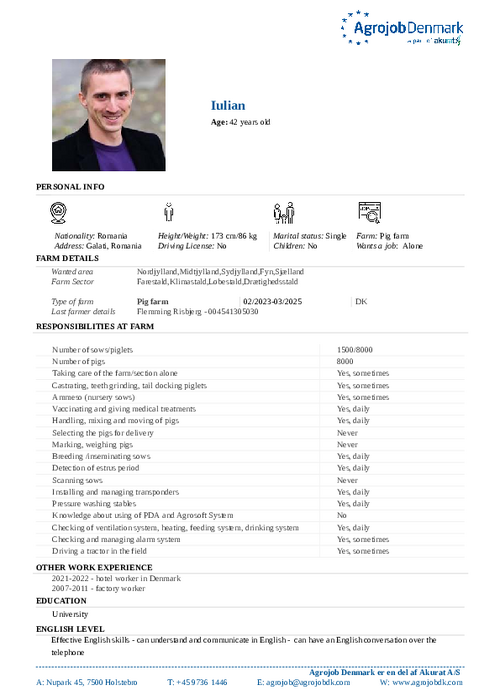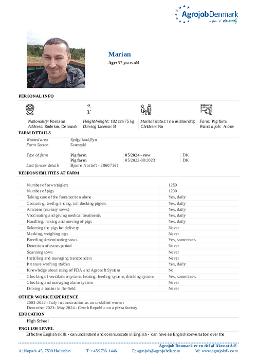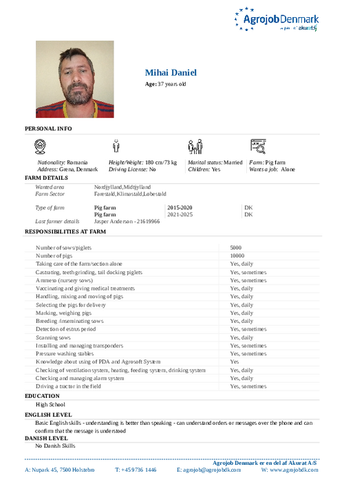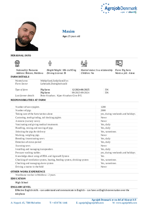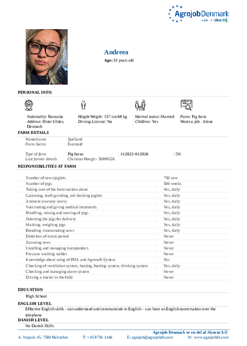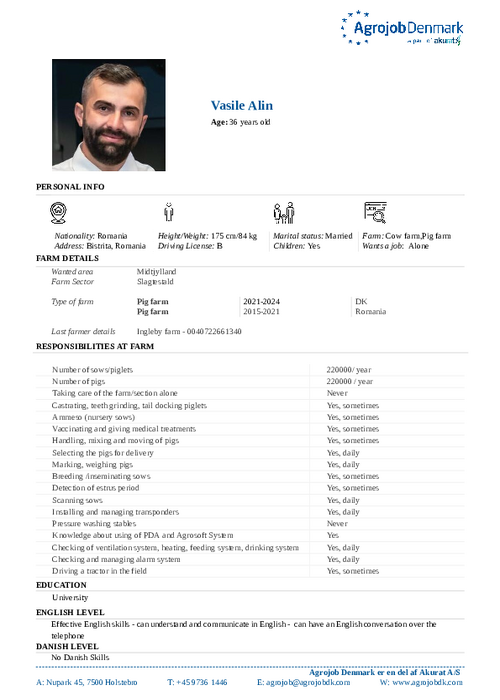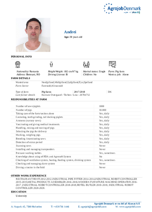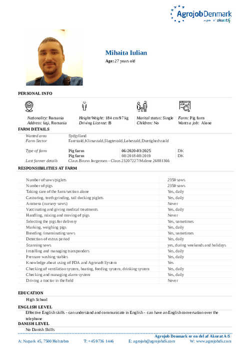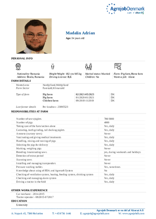 Vil du vide mere om de enkelte kandidater? Kontakt os på tlf. 97 36 14 46 eller skriv til agrojob@agrojobdk.com, hvor vi også sidder klar med gode råd og vejledning.