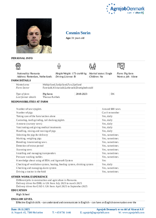 Læs videre og se vores kandidater med erfaring fra svinebesætninger.
