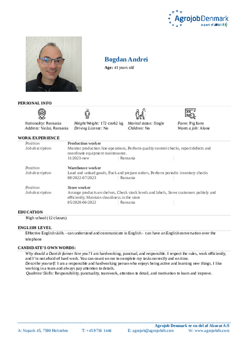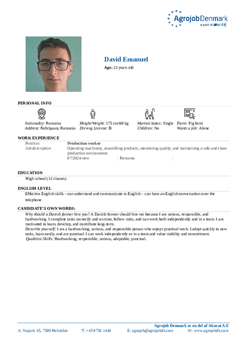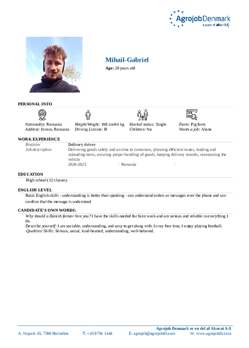 Vil du vide mere om de enkelte kandidater? Kontakt os på tlf. 97 36 14 46 eller skriv til agrojob@agrojobdk.com, hvor vi også sidder klar med gode råd og vejledning.